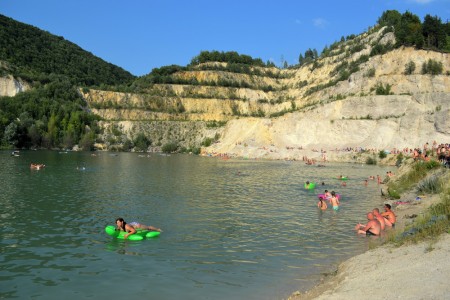 V Šútove sa od rána nazbieral celkom slušný počet áut. Parkujú pri vode, pri domoch ale aj na okraji ciest, pretože priamo pri jazere sa za parkovanie platilo. Poľské, české aj slovenské značky, všetky sa prišli okúpať do bývalého lomu, ktorý je dnes zatopený a slúži na príjemné čľapkacie účely. Voda nie je vyhrievaná, pár stupňov navyše by ju určite nepokazilo, ale po teplom dni a namáhavej chôdzi padne vhod. K „mojim“ chlapom sa pripájajú ešte dva mužské kusy a brigáda v natieraní chrbtov začína. Potom už len fijú domov, ku krémom po opaľovaní.