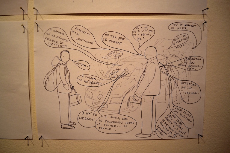 Okrem iného sa na výstave nachádzajú aj diela takzvaného storyboardu – obrazového scenára v kombinácii s prvkami komixu. Atraktívne sú aj diela, ktoré sú postavené na prepise z pohyblivého média filmu do statického média maľby.