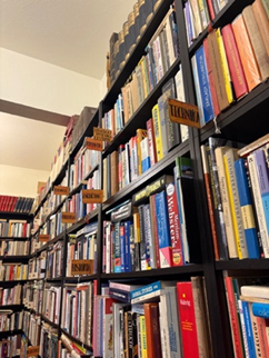 Maličká miestnosť s tlmeným svetlom a drevenými policami ukrýva stovky kníh. Tematické oblasti sú tu rozmanité – beletria, detektívky, cestopisy, odborné tituly o technike, filozofii, jazykoch, psychológii a mnohých ďalších témach. Knihy tu pribúdajú každý deň a čakajú na nového čitateľa. Stoja len pár eur, no ich skutočná hodnota je nevyčísliteľná. Svoj priestor si tu nenájdu len čitatelia, ale aj milovníci hudby – popri knihách sa v regáloch blyštia aj vinylové platne, ktoré dotvárajú atmosféru minulých čias.